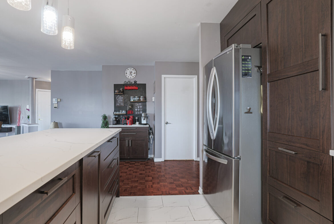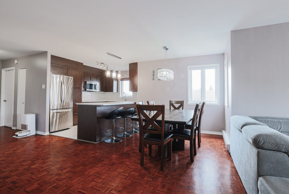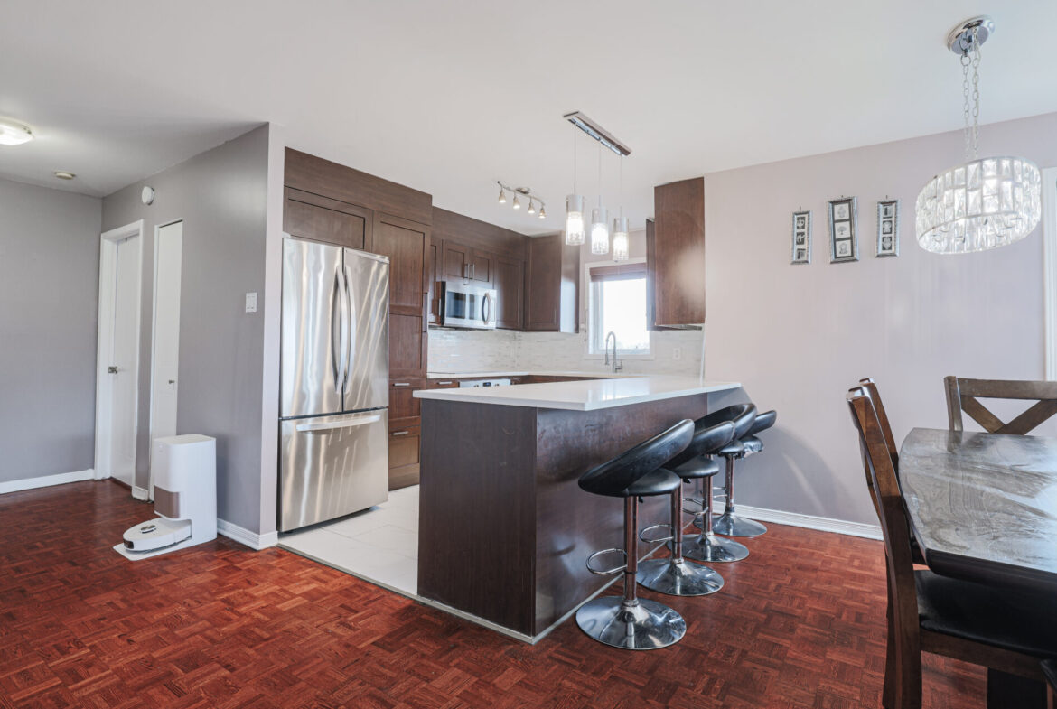 Located at 515 Périgueux Street, this turnkey condo has been beautifully renovated. The kitchen is modern, the paint is fresh, and the floors have been upgraded with an elegant mahogany finish. The bathroom shines with new cabinetry and a brand-new vanity. Enjoy a refined living space close to Carrefour Laval and Highways 13, 15, and 440. A perfect blend of comfort and style in a highly sought-after area.